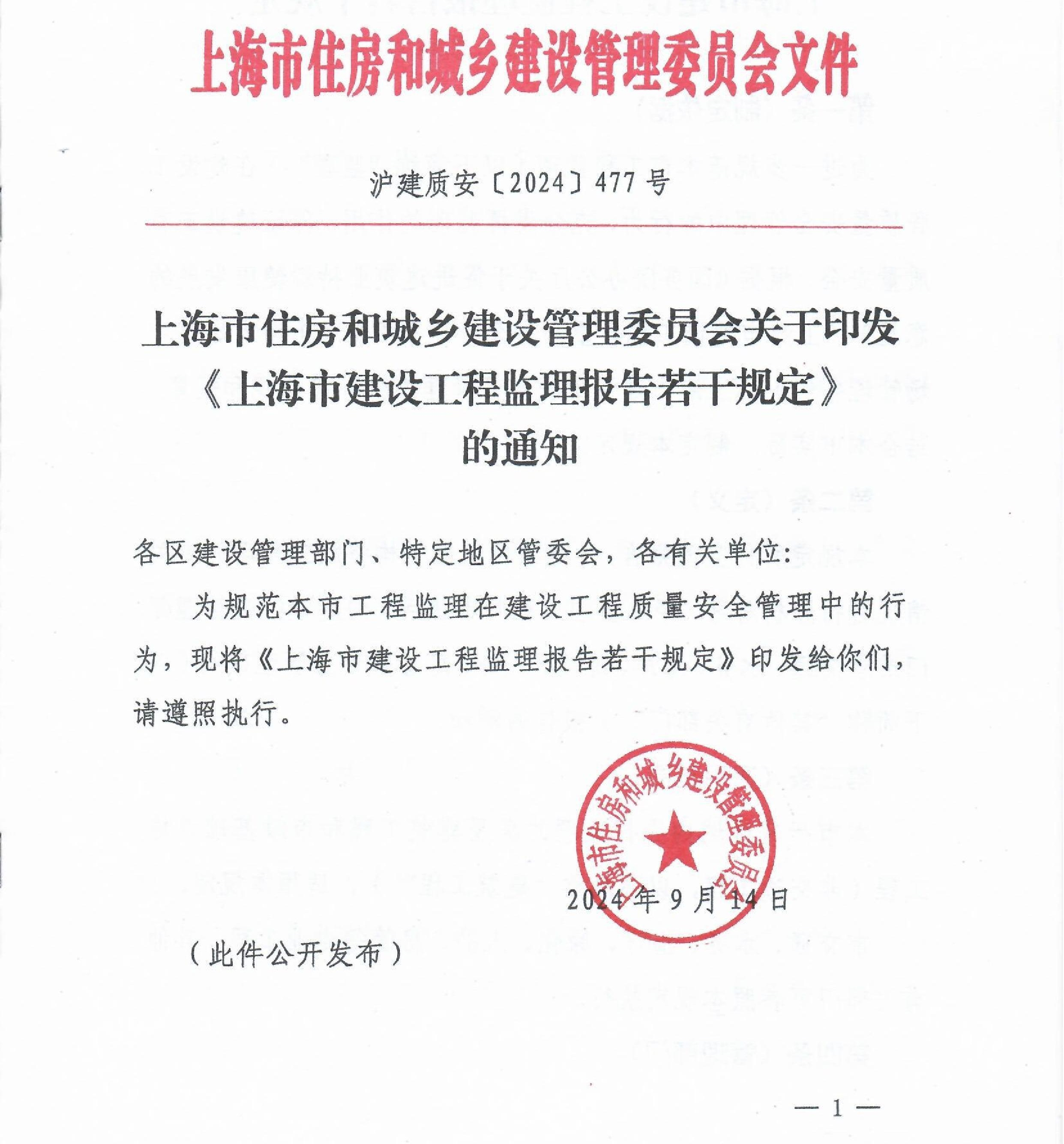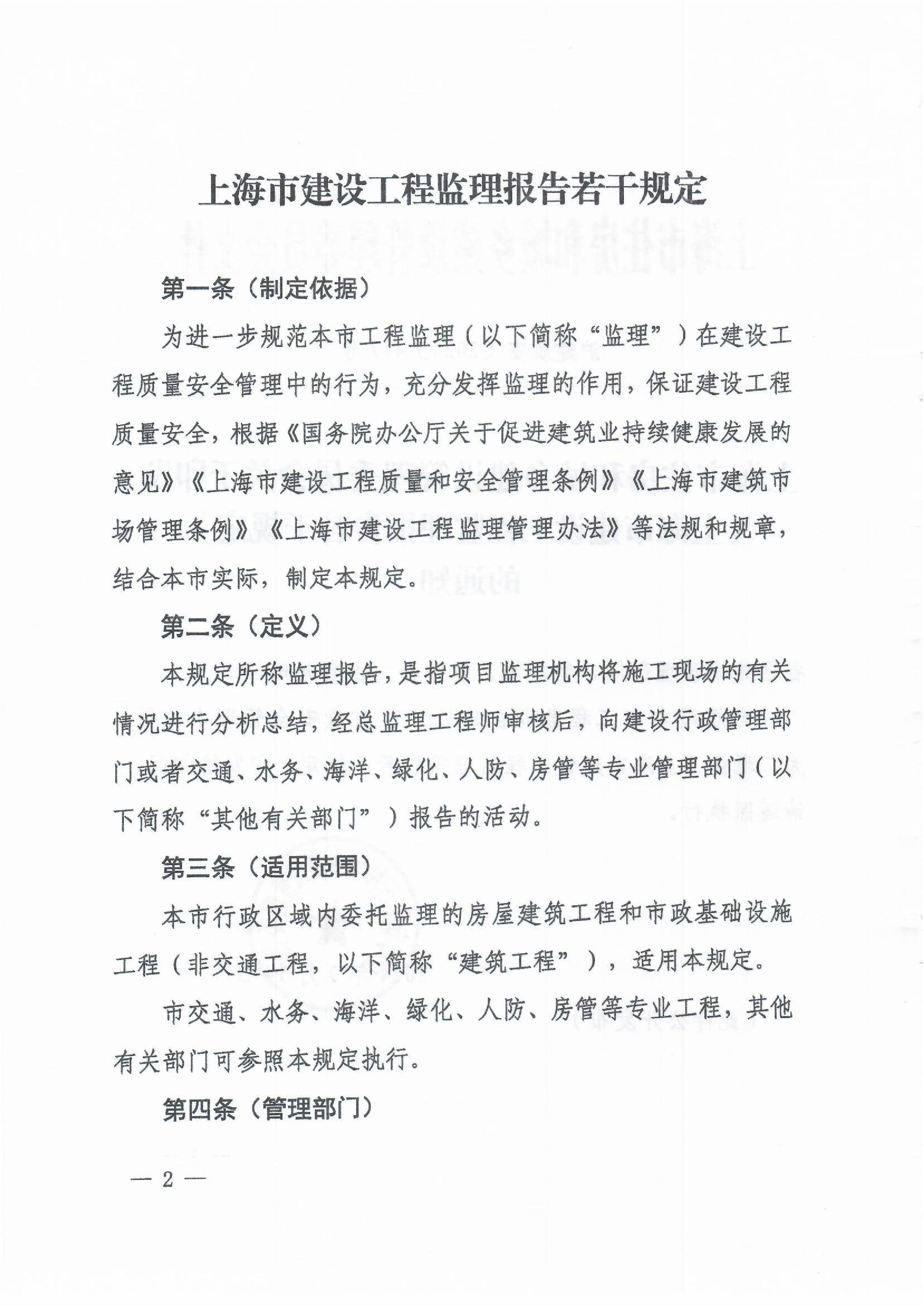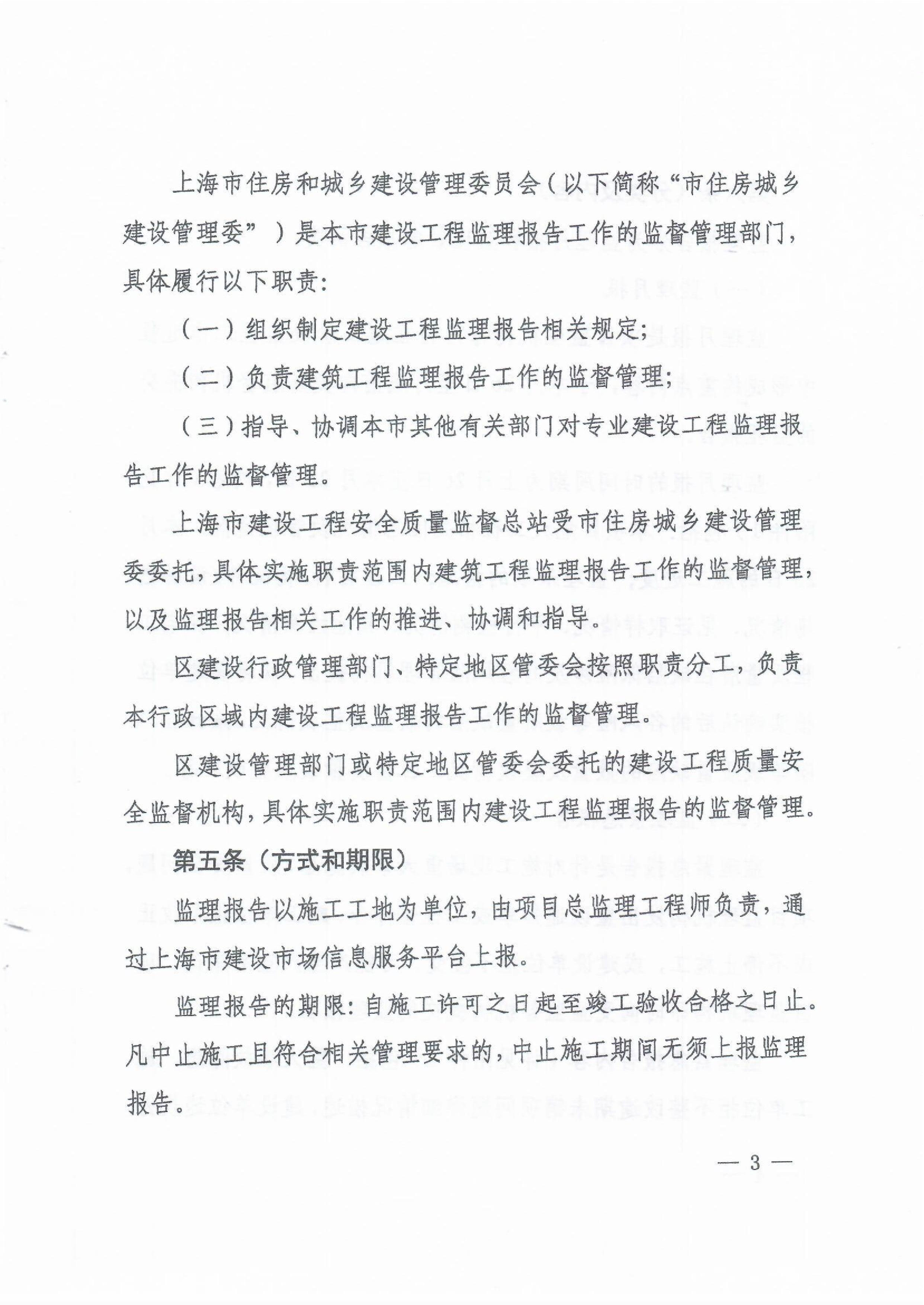 上海市住房和城乡建设管理委员会关于印发《上海市建设工程监理报告若干规定》的通知