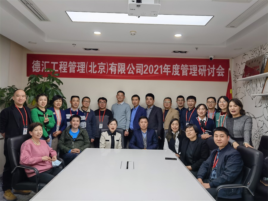 2022年1月8日,德汇工程管理(北京)有限公司召开了2021年年终管理研讨会。会议由副总经理林晓东主持,公司管理层共计21人参加本次会议,集团公司路洋和北京中和建城建筑工程设计有限公司总经理卢礼杰列席了本次会议。